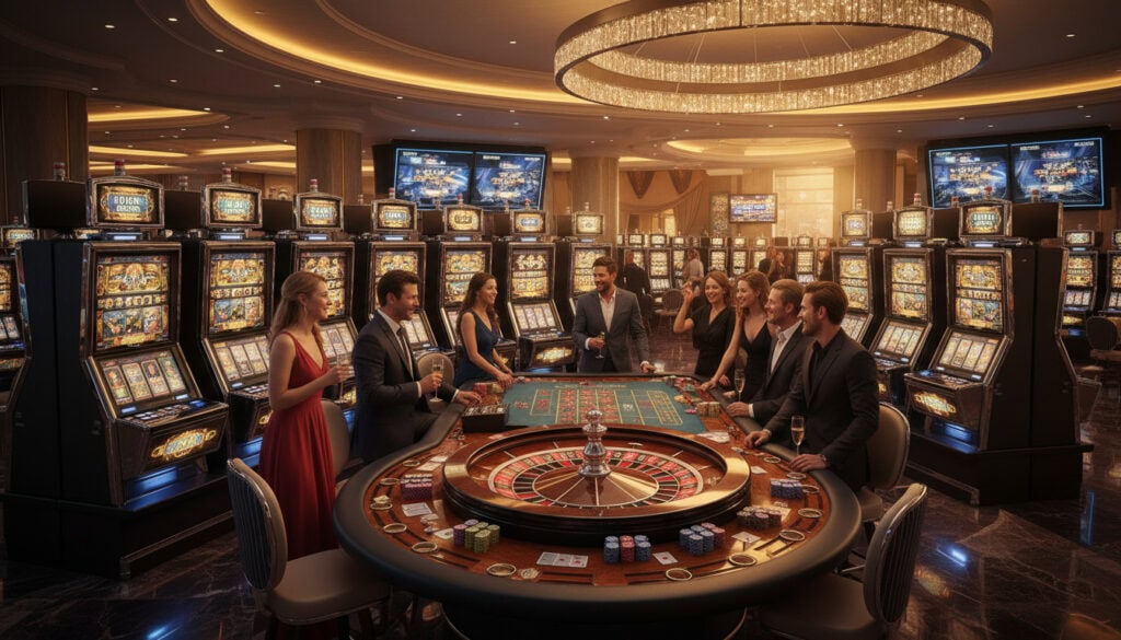 - Bordspill: blackjack, roulette, baccarat, poker m.fl.